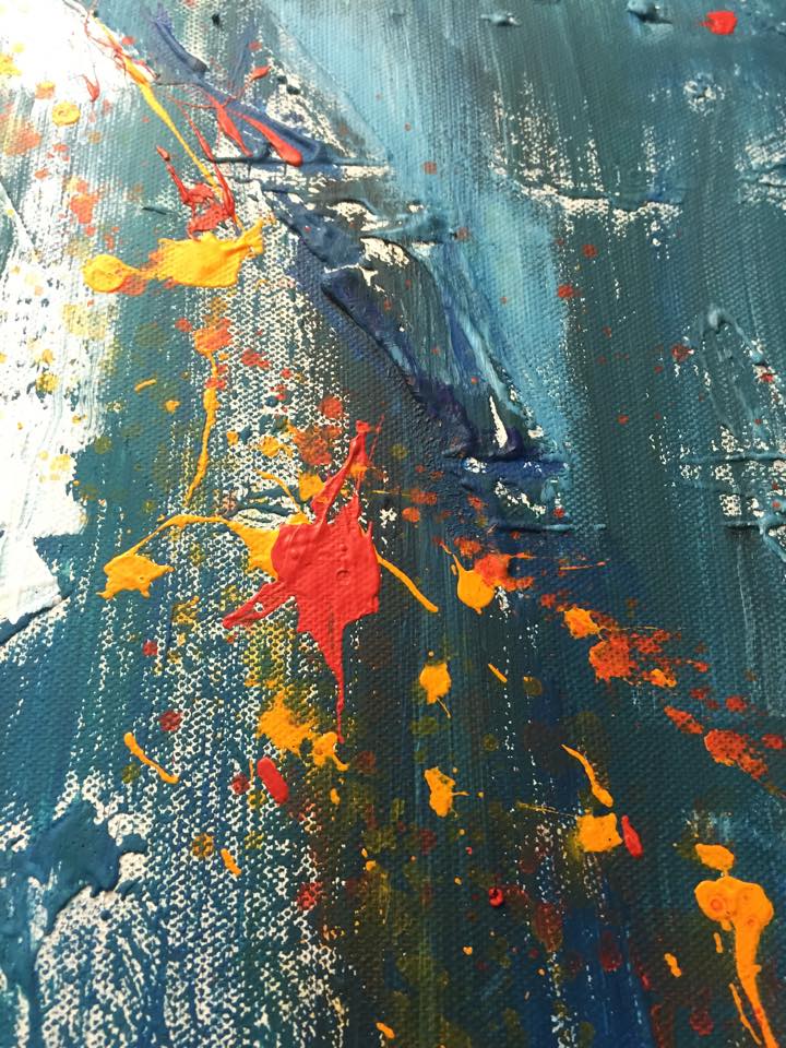 " Abbandonarsi alla vita" , 60x60, acrilico e smalto su tela, materico.